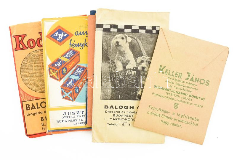 Beschreibung: Budapest II. Margit körúti fotótasakok néhány negatívval, Keller János, Balogh, Novák, Juszt, 6 db