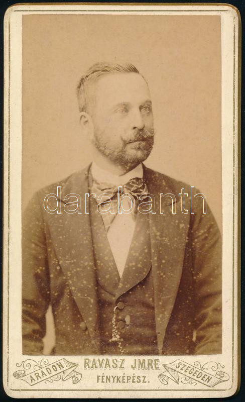 cca 1885 Férfiportré, keményhátú fotó Ravasz Imre aradi műterméből, 10... https://www.darabanth.com/de/449-Fernauktion/449.0/Fotografie/Foto~500023/cca-1885-Ferfiportre-kemenyhatu-foto-Ravasz-Imre-aradi-mutermebol-10-5C3976-5-cm~II2979474