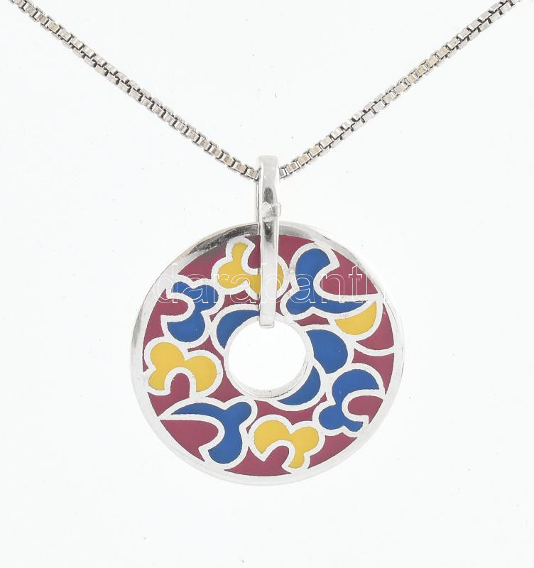 Beschreibung: Ezüst(Ag) venezianer nyaklánc zománcozott medállal, jelzett, h: 44 cm, bruttó: 9,7 g