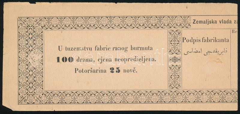 Bosznia Hercegovina dohány zárszalag https://www.darabanth.com/de/449-Fernauktion/449.0/Kunst-Dokumente-andere-Sammelgebiete/Dokument~500020/Bosznia-Hercegovina-dohany-zarszalag~II2956076