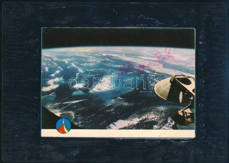 Beschreibung: Magyari Béla (1949-2018) űrhajós autográf aláírása "Szovjet-Magyar Közös Űrrepülés 1980" képeslapon, laminálva, 14,5x10,5 cm