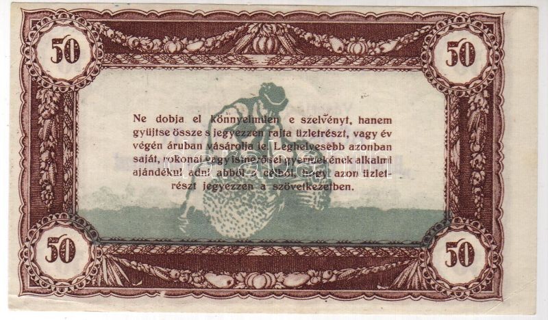 1920-as évek Hangya Szövetkezeti 50K vásárlási üzletrész lemezhibákkal... https://www.darabanth.com/de/45-Fernauktion/45.0/Numismatik/~202/1920-as-evek-Hangya-Szovetkezeti-50K-vasarlasi-uzletresz-lemezhibakkal-lila-Budszentmiha~II90033