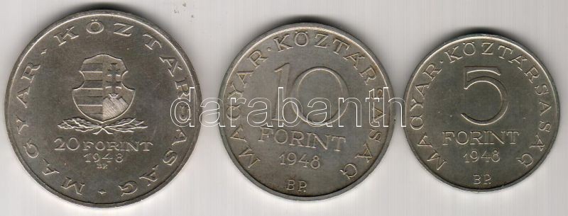 1948. 5Ft+10Ft+20Ft Ag "Petőfi, Széchenyi, Táncsics-Szabadságharc" sor... https://www.darabanth.com/de/45-Fernauktion/45.0/Numismatik/~202/1948-5Ftplus10Ftplus20Ft-Ag-Petofi-Szechenyi-Tancsics-Szabadsagharc-sor-T2~II89009