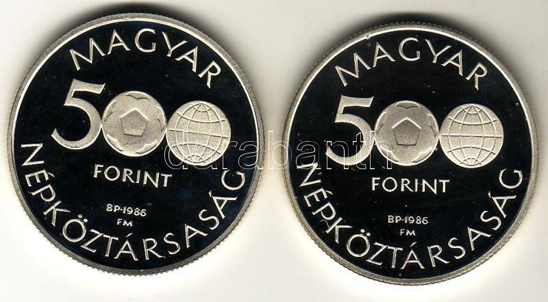 1986. 500Ft Ag pár, 2 klf db "Labdarúgó VB" T:PP https://www.darabanth.com/de/45-Fernauktion/45.0/Numismatik/~202/1986-500Ft-Ag-par-2-klf-db-Labdarugo-VB-TPP~II87962