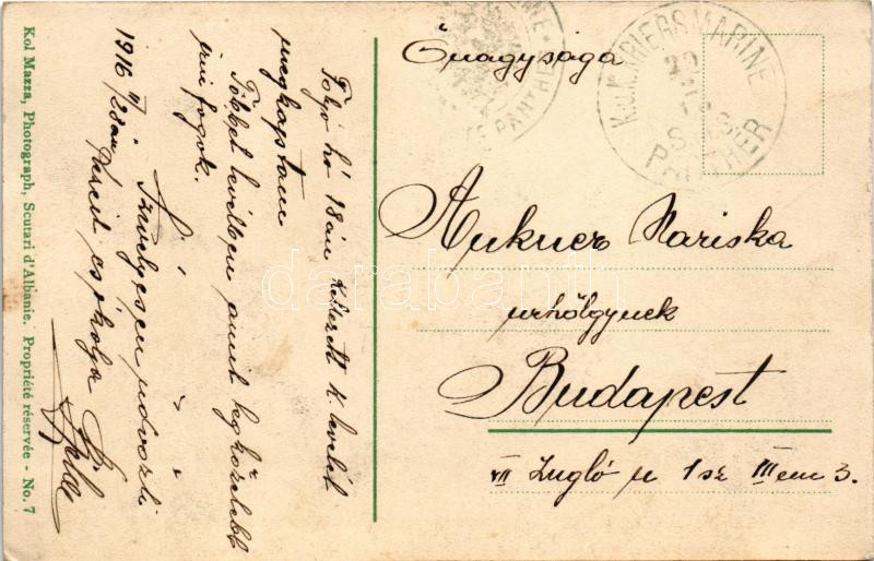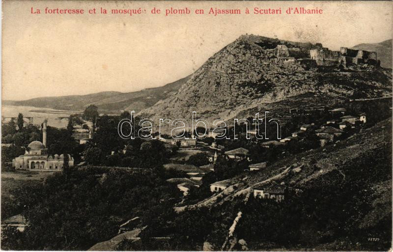 1916 Shkoder, Shkodra, Skadar, Skodra, Scutari, Skutari; La forteresse et la mosquée de plomb en Ajassum. Kol Mazza Photograph / fortress, mosque + "K.u.k. Kriegsmarine SMS Panther"
