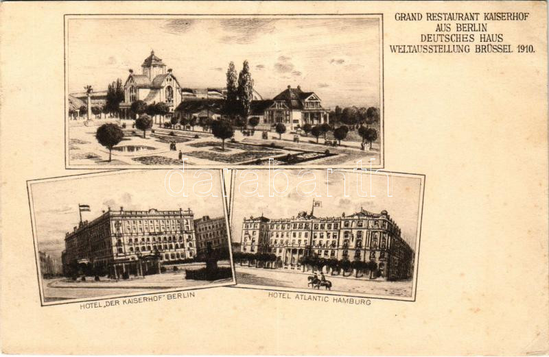Brussels, Bruxelles; Grand Restaurant Kaiserhof aus Berlin Deutsches Haus Weltausstellung 1910, Hotel Der Kaiserhof Berlin, Hotel Atlantic Hamburg / World Exhibition 1910, German restaurant, inn, hotel (EB)