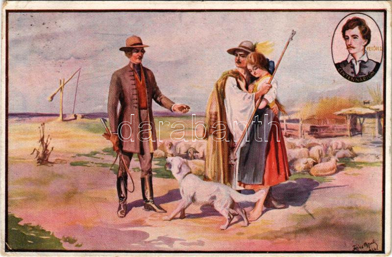 1923 Petőfi Centenárium: Alku. Bodócs L. Írók gondolatainak reprodukálására mintaszabad.: 33838/922 / / Hungarian folklore art postcard. Edition of the Petőfi Academy s: Fejes Gy. (gyűrődések / creases)