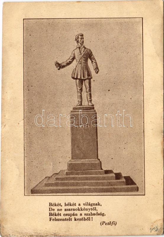 Petőfi Sándor. Békét, békét a világnak, De ne zsarnokkénytől, Békét csupán a szabadság, Felszentelt kezéből! / Hungarian Irredenta, Petőfi's poem (gyűrődések / creases)
