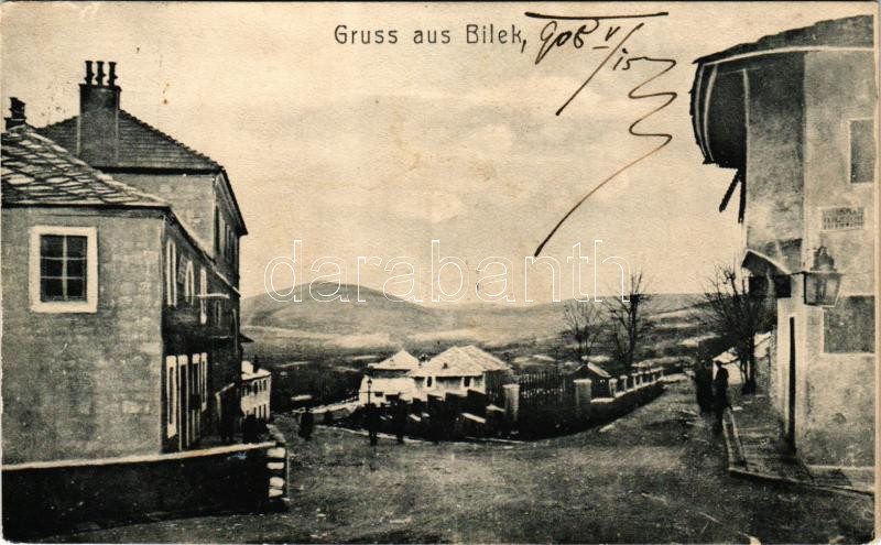 1908 Bileca, Bilek; Herm. Agid. / street view (worn surface) https://www.darabanth.com/de/45-Gross-Auktion/45.1/Ansichtskarten/Bosnien-und-Herzegowina~18776/1908-Bileca-Bilek-Herm-Agid-street-view-worn-surface~II3455993