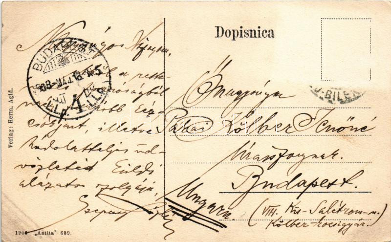 Beschreibung: 1908 Bileca, Bilek; Herm. Agid. / street view (worn surface)