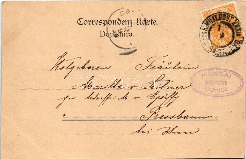 Beschreibung: Sarajevo, general view, mosque, Bosnian folklore. Atelier Schädler Art Nouveau, floral (EK)