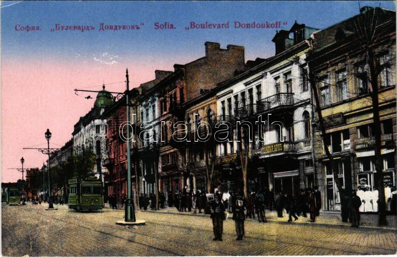 Sofia, Sophia, Sofiya; Boulevard Dondoukoff / street view, trams, shop... https://www.darabanth.com/de/45-Gross-Auktion/45.1/Ansichtskarten/Bulgarien~18777/Sofia-Sophia-Sofiya-Boulevard-Dondoukoff-street-view-trams-shops-EK~II3454888
