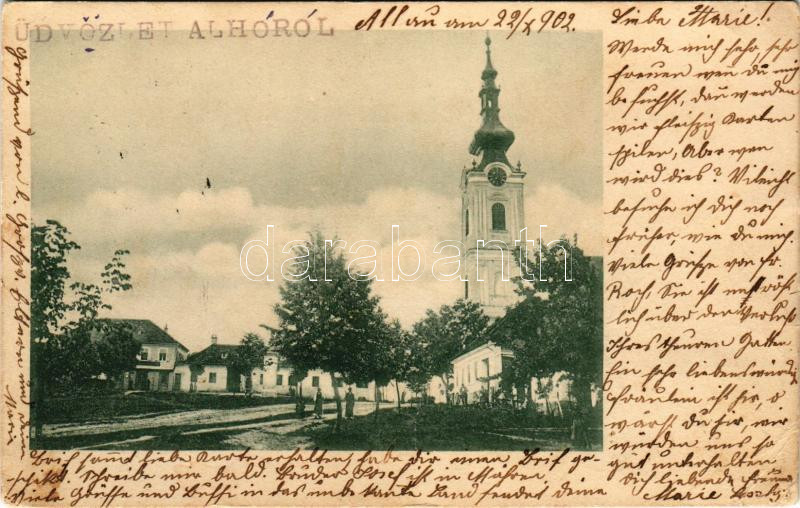 Beschreibung: 1902 Alhó, Markt Allhau; látkép, templom / general view, church (EB)