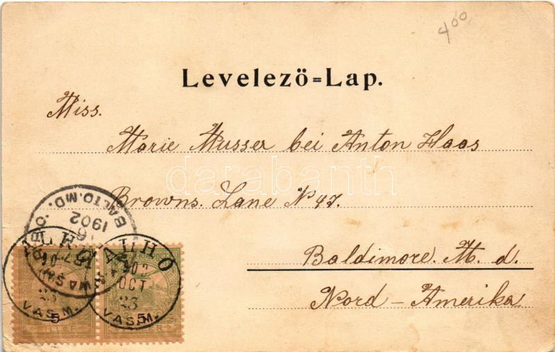 1902 Alhó, Markt Allhau; látkép, templom / general view, church (EB) https://www.darabanth.com/de/45-Gross-Auktion/45.1/Ansichtskarten/Burgenland~18769/1902-Alho-Markt-Allhau-latkep-templom-general-view-church-EB~II3449078