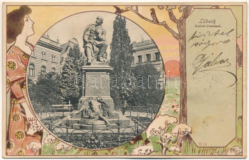 1900 Lübeck, Geibel-Denkmal. Knackstedt & Näther / monument. A... https://www.darabanth.com/de/45-Gross-Auktion/45.1/Ansichtskarten/Deutschland~18808/1900-Lubeck-Geibel-Denkmal-Knackstedt-amp-Nather-monument-Art-Nouveau-floral-litho-frame-~II3439080