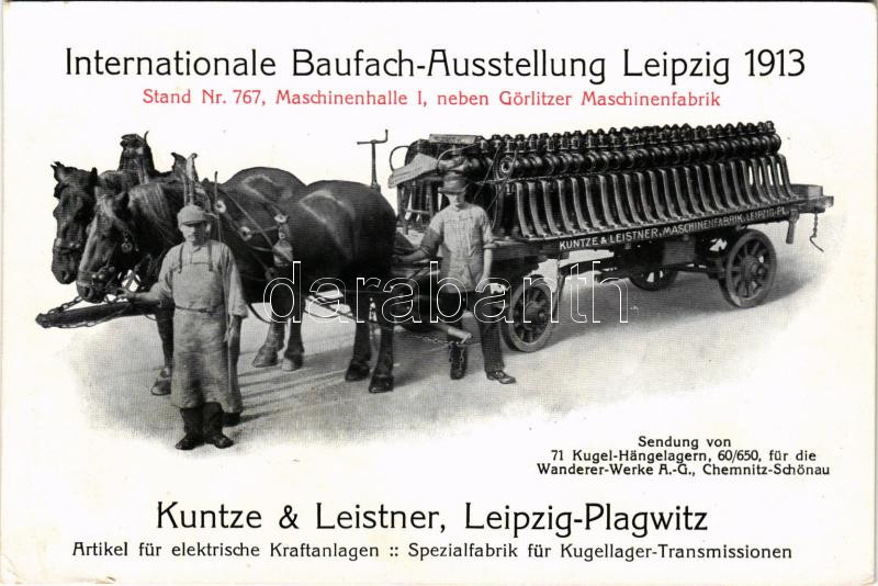 1913 Leipzig, Internationale Baufach-Ausstellung Stand Nr. 767. Kuntze & Leistner, elektrische Kraftanlagen / international construction work exhibition (EK)