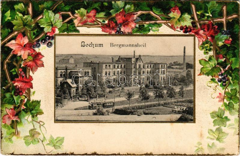 Beschreibung: Bochum, Bergmannscheil / street, tram. Art Nouveau, floral, Emb. litho frame (pinhole)