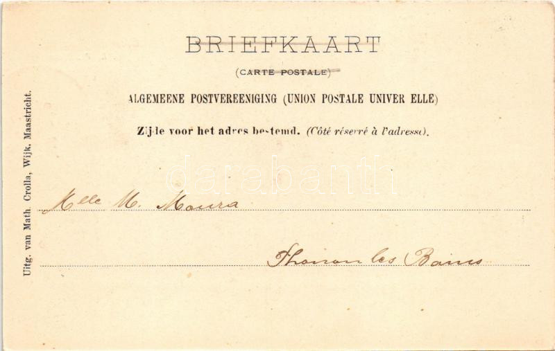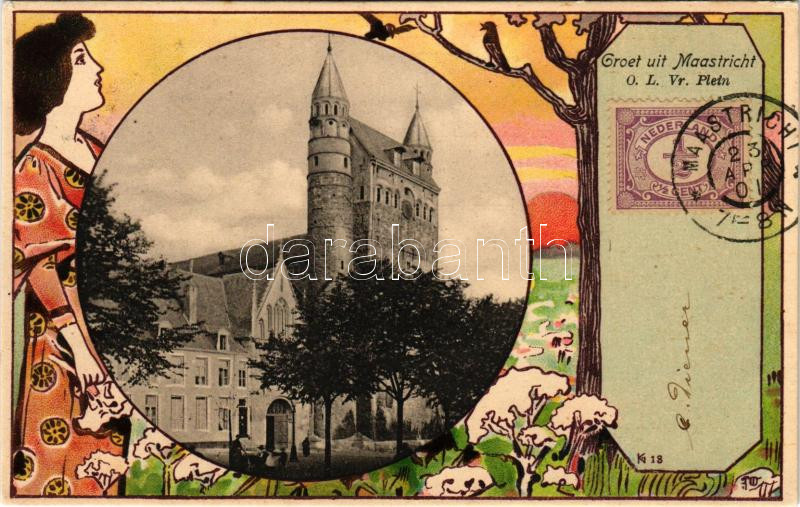 1901 Maastricht, Groet. Math. Crolla / church, tower. Art Nouveau, lit... https://www.darabanth.com/de/45-Gross-Auktion/45.1/Ansichtskarten/Die-Niederlanden~18787/1901-Maastricht-Groet-Math-Crolla-church-tower-Art-Nouveau-litho-frame-with-lady-and-tree-T~II3413118