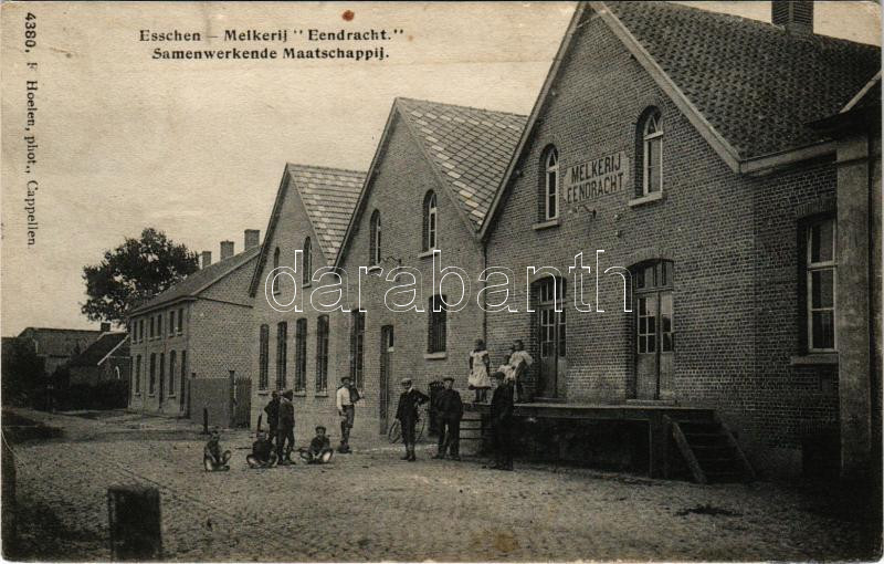 Beschreibung: Essen, Esschen (Groningen); Melkerij "Eendracht". Samenwerkende Maatschappij / United Dairy Cooperative. F. Hoelen photo (fl)