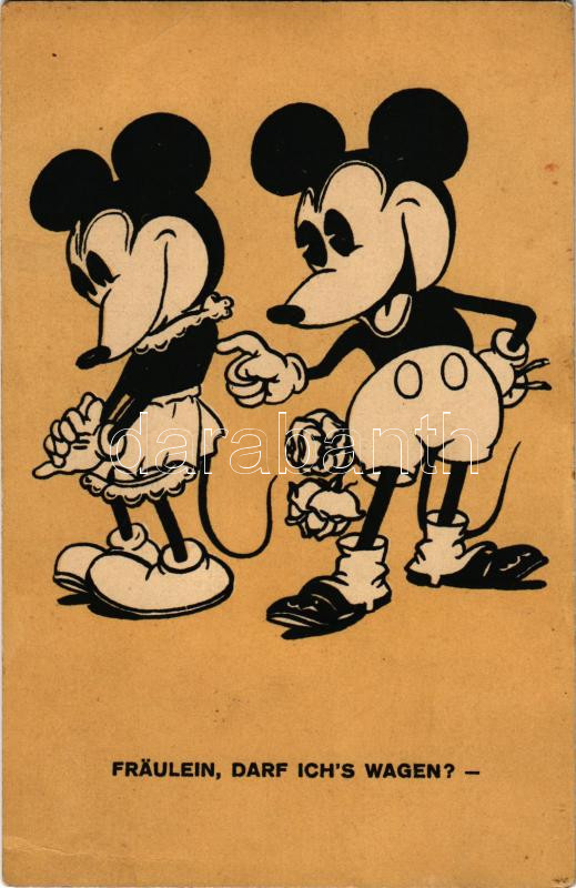 Fräulein, darf ich's wagen? / Walter E. Disney art postcard, Mick... https://www.darabanth.com/de/45-Gross-Auktion/45.1/Ansichtskarten/Disney~18828/Fraulein-darf-ichs-wagen-Walter-E-Disney-art-postcard-Mickey-and-Minnie-Mouse-EB~II3454602