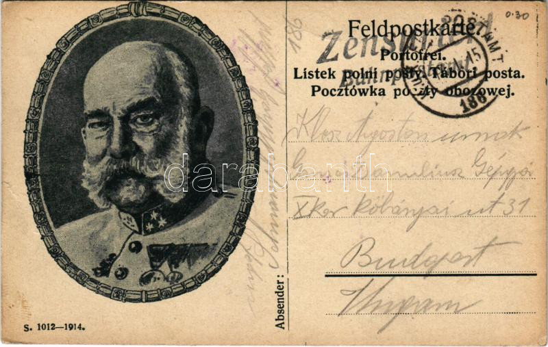 1915 Ferenc József - tábori posta / Franz Joseph. Feldpostkarte