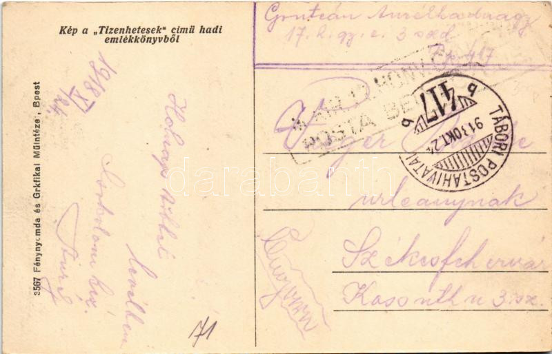 1918 Őfelsége szemléje ezredünknél 1917 január havában, IV. Károly király, osztrák-magyar katonák. Kép a "Tizenhetesek" című hadi emlékkönyvből / Charles I of Austria visiting the battlefield, Austro-Hungarian K.u.k. soldiers + "Tábori postahivatal 417"