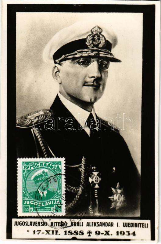 1937 Jugoslavenski Viteski Kralj Aleksandar I. Ujediniteli / Alexander I, König von Serbien / Alexander I of Serbia (Aleksandar Obrenovic). TCV card. photo