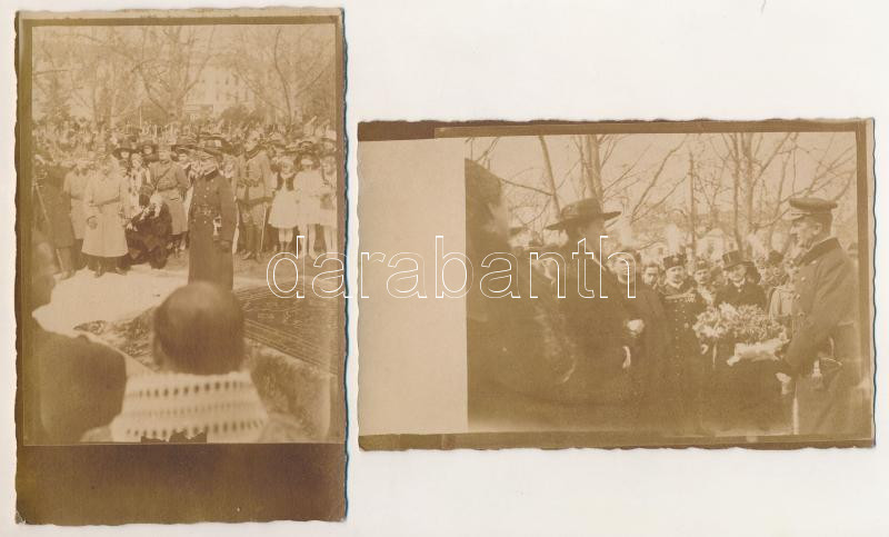 Horthy Miklós - 2 db RÉGI fotós képeslap: ünnepség, darutollas tisztek, katonák / 2 pre-1945 photo postcards of regent Horthy, celebration, officers with crane feathers, soldiers