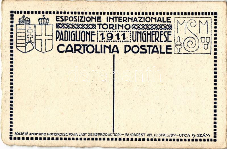 1911 Torino, Esposizione Internazionale, Padiglione dell'Ungheria / Magyar pavilon a torinói nemzetközi kiállításon / Hungarian pavilion at the Turin International Exposition, automobiles. Hungarica