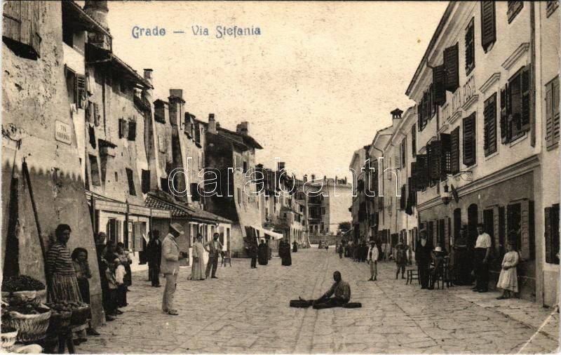 1910 Grado, Via Stefania / street view, shops (small tear) https://www.darabanth.com/de/45-Gross-Auktion/45.1/Ansichtskarten/Italien~18809/1910-Grado-Via-Stefania-street-view-shops-small-tear~II3452294