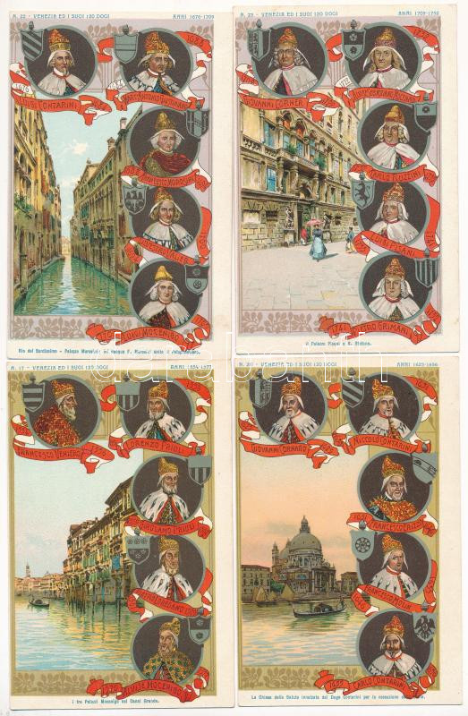 Venezia - Ed I Suoi 120 Dogi / The doges of Venice; a set of 24 unused lithographic postcards / 24 használatlan litho képeslap 120 velencei dózse képével
