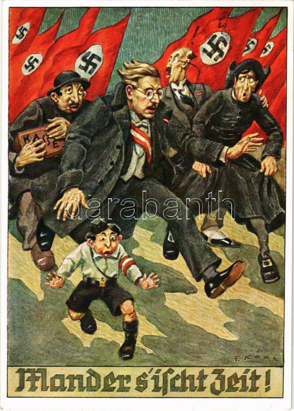 1938 Mander s'ischt Zeit! / NSDAP Nazi propaganda, swastika, Juda... https://www.darabanth.com/de/45-Gross-Auktion/45.1/Ansichtskarten/Judaica~18837/1938-Mander-sischt-Zeit-NSDAP-Nazi-propaganda-swastika-Judaica-s-F-Kock-plus-Besuchet-die-Aud~II3454178