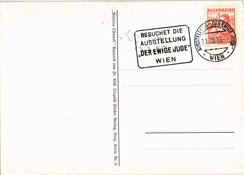 Beschreibung: 1938 Mander s'ischt Zeit! / NSDAP Nazi propaganda, swastika, Judaica s: F. Köck + "Besuchet die Audsstellung Der Ewige Jude Wien" So. Stpl