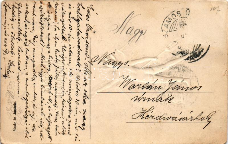 1909 Festő Krampusz / Painter Krampus. Emb. litho (EK) https://www.darabanth.com/de/45-Gross-Auktion/45.1/Ansichtskarten/Krampus~18840/1909-Festo-Krampusz-Painter-Krampus-Emb-litho-EK~II3443179