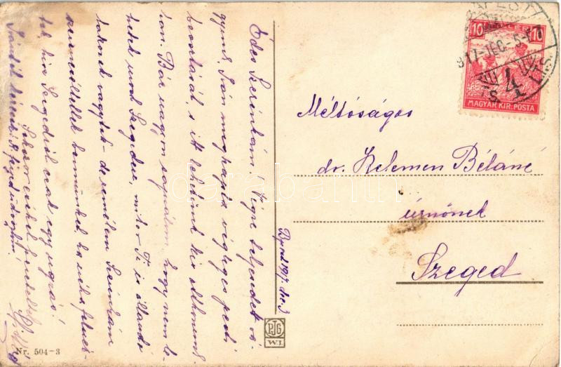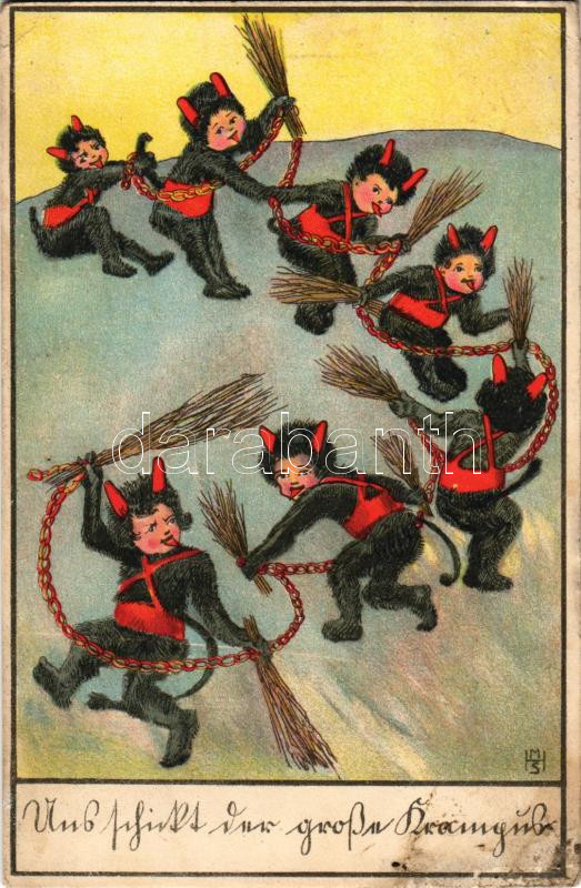 Beschreibung: 1917 Und schickt der grosse Krampus / kis Krampuszok / mini Krampuses. P.G.W.I. 504-3. litho s: H.M.S. (ázott / wet damage)