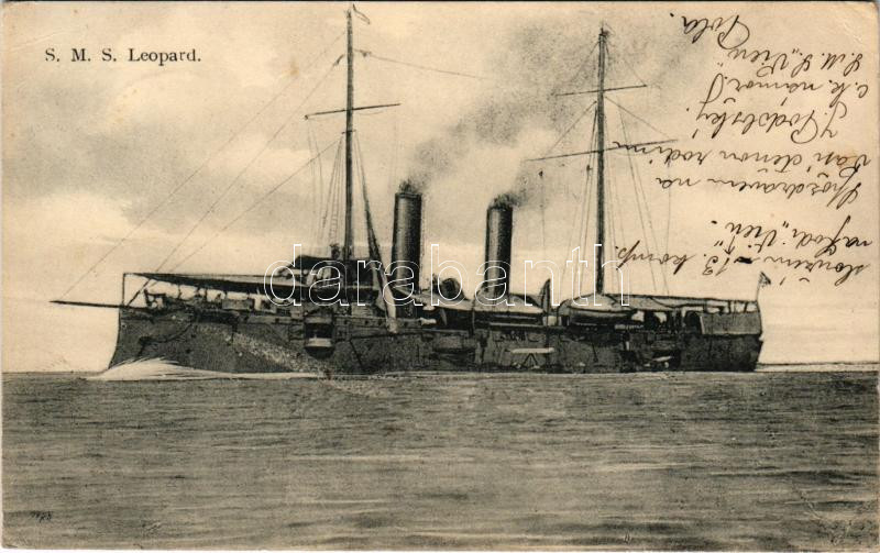 1909 SMS Leopard, K.u.k. Kriegsmarine. G. Fano Pola 1909-10. 139. (EK) https://www.darabanth.com/de/45-Gross-Auktion/45.1/Ansichtskarten/Kriegsschiffe~18831/1909-SMS-Leopard-Kuk-Kriegsmarine-G-Fano-Pola-1909-10-139-EK~II3455332