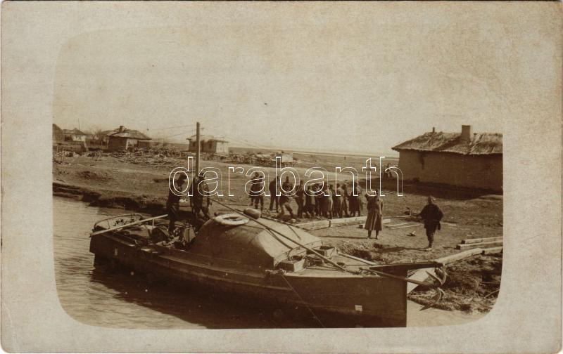 1917 Nikopol (Bulgária), Császári és Királyi Haditengerészet motorcsónakja katonákkal. Dunaflottilla / WWI Austro-Hungarian Navy K.u.K. Kriegsmarine Danube Fleet (Donauflottille) motor boat in Nikopol (Bulgaria) with K.u.K. soldiers. photo (fl)