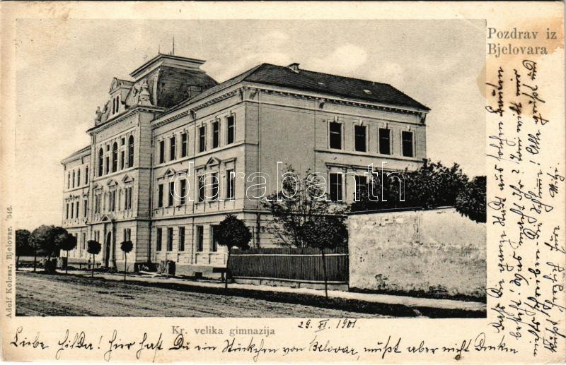 Beschreibung: 1901 Belovár, Bjelovar; Kr. velika gimnazija / grammar school. Adolf Kolesar (Rb)