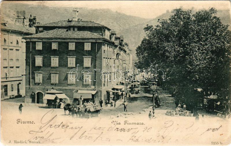 Beschreibung: 1902 Fiume, Rijeka; Via Fiumara / street, horse-drawn tram, construction. J. Radici (r)