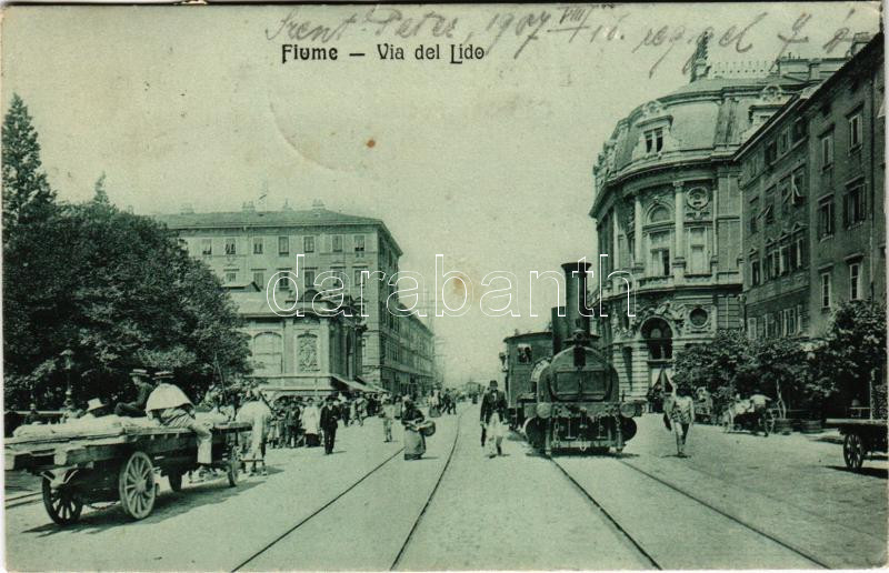 1907 Fiume, Rijeka; Via del Lido / utca, városi vasút, vonat, gőzmozdo... https://www.darabanth.com/de/45-Gross-Auktion/45.1/Ansichtskarten/Kroatien~18766/1907-Fiume-Rijeka-Via-del-Lido-utca-varosi-vasut-vonat-gozmozdony-street-view-urban-rai~II3448113