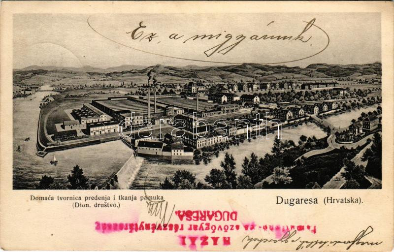 1912 Duga Resa, Dugaresa, Dugerese; Domaca tvornica predenja i tkanja ... https://www.darabanth.com/de/45-Gross-Auktion/45.1/Ansichtskarten/Kroatien~18766/1912-Duga-Resa-Dugaresa-Dugerese-Domaca-tvornica-predenja-i-tkanja-pamuka-Dion-drustvo-Hazai~II3448139