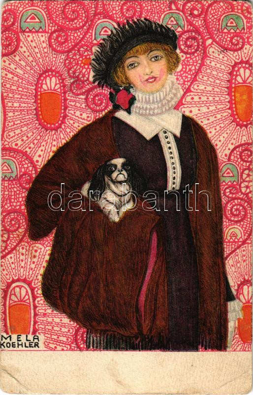 1913 Art Nouveau lady with dog. B.K.W.I. 621-3. s: Mela Koehler (EB) https://www.darabanth.com/de/45-Gross-Auktion/45.1/Ansichtskarten/Kunstlerkarten~18844/1913-Art-Nouveau-lady-with-dog-BKWI-621-3-s-Mela-Koehler-EB~II3448235