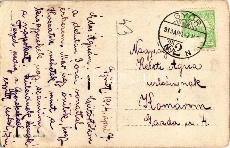 Beschreibung: 1913 Art Nouveau lady with dog. B.K.W.I. 621-3. s: Mela Koehler (EB)