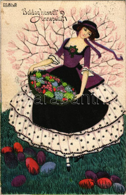 1915 Boldog Húsvéti Ünnepeket! / Easter lady. B.K.W.I. 4636-2. s: Mela... https://www.darabanth.com/de/45-Gross-Auktion/45.1/Ansichtskarten/Kunstlerkarten~18844/1915-Boldog-Husveti-Unnepeket-Easter-lady-BKWI-4636-2-s-Mela-Koehler-EK~II3448217