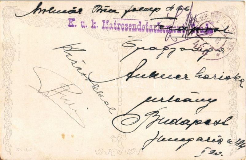 Beschreibung: 1918 Ernst ist das Leben. B.K.W.I. Nr. 1547. / monkey art postcard s: Otto Friedrich + "K.u.k. Matrosendetachement Grado" (EK)