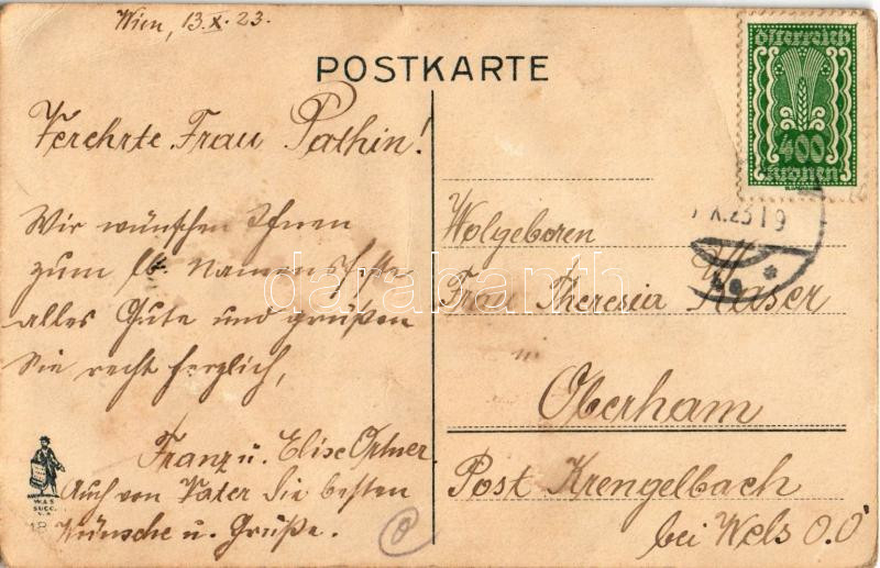 Beschreibung: 1923 Herzlichen Glückwunsch! / Viennese Art Nouveau s: Mela Koehler (gyűrődések / creases)