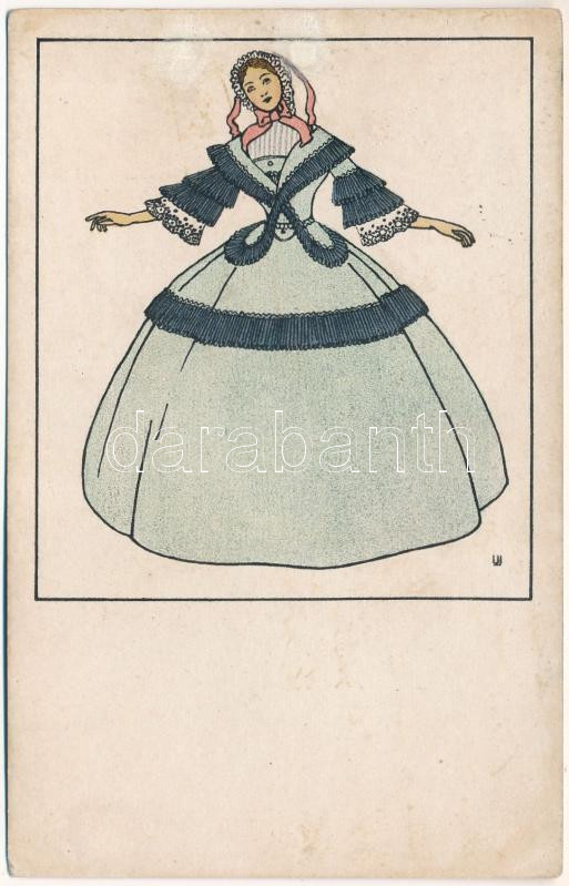 Biedermeiermode. Wiener Werkstätte No. 128. s: Urban Janke (r) https://www.darabanth.com/de/45-Gross-Auktion/45.1/Ansichtskarten/Kunstlerkarten~18844/Biedermeiermode-Wiener-Werkstatte-No-128-s-Urban-Janke-r~II3448108