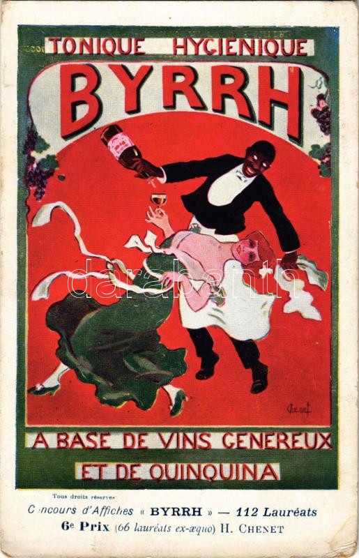 Tonique Hygienique Byrrh. A base de vins genereux et de quinquina. Concours d'Affiches "Byrrh" - 112 Lauréats 6e Prix (66 lauréats ex-aequo) / French apéritif advertisement art postcard. Art Nouveau s: H. Chenet (kopott sarkak / worn corners)
