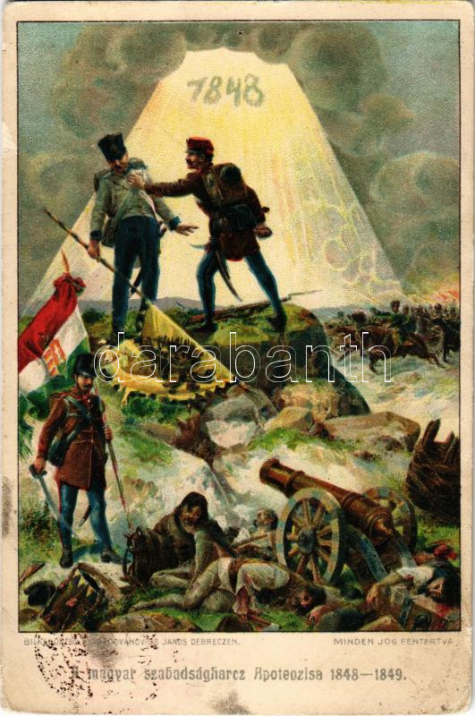 1905 A magyar szabadságharc apoteózisa 1848-1849. Bilkei Dezső és Radovánovics János / Hungarian War of Independence, Hungarian Revolution of 1848. Globus litho (lyuk / pinhole)