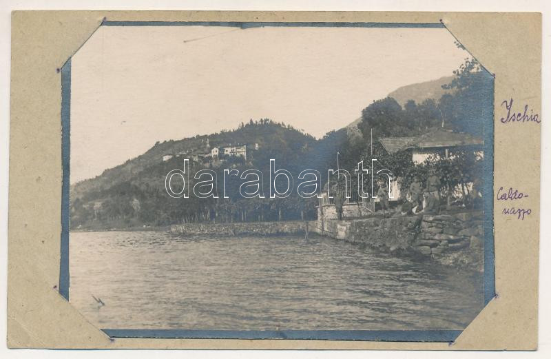 1918 Ischia, Lago di Caldonazzo; osztrák-magyar katonák a tó partján. Tábori postai levelezőlapra illesztve / WWI Austro-Hungarian K.u.k. soldiers by the lake, military field postcard. photo (EB)